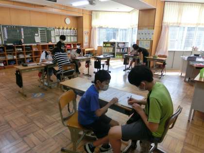 4年生は、算数の授業です。先生の説明を真剣に聞いています。5年生は、国語授業です。お互いに意見を出し合う学習です。どんな意見が出たのでしょうか。