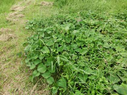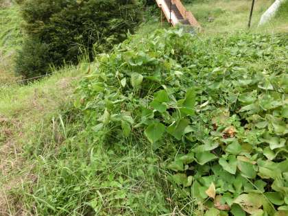 観察の間隔があいてしまっていますが今日で134日目になります。朝が涼しくなり、イモの葉も草も色づいてきました。芋の実ができているか気になるところです。