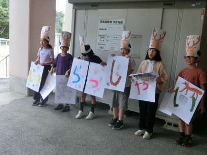 6年生は、来週は1泊2日の修学旅行に出かけます。昨日、木曜日の一斉下校に合わせて5年生からの「行ってらっしゃーい」の激励会がありました。鹿の姿をした5年生が楽しく鹿せんべいを与えた時の様子を演じてくれました。6年生のみなさん楽しんできてください。