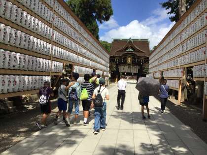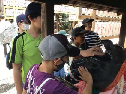 見学地3か所目は北野天満宮です。ガイドさんの説明を聞いて一生懸命願いごとをしていました。みんな賢くなれるよう願ったようです。