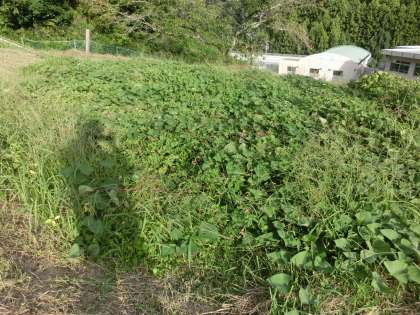 本当に間が空いてしまいました。142日目のイモ畑の様子です。畑の周辺は校内整備員さんのおかげできれいに草が刈られていました。イモの葉は収穫が近いせいなのか少し茶色っぽくなっていました。
