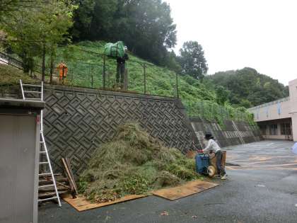 小雨の降る中、今年度2回目のPTA奉仕作業にご協力ありがとうございました。早朝の7時から前半の刈り払い機による草刈り、後半の回収班と2班に分かれての活動です。後半は少し雨足が強くなりましたが、時間いっぱい活動をしていただきました。