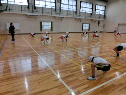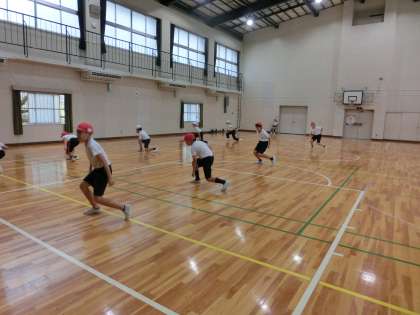 6時間目、5,6年生が体育館に向かい、間もなくすると校長室の天井から足音が響いてきました。すぐに2階の体育館に行くと運動会の演技種目「幸海ソーラン」の動きが始まっていました。いよいよ1か月後に控えた運動会に向けて動き出したようです。