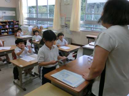 令和7年度の前期が終了します。今年度4月に9人の新1年生を迎えてスタートしました。この半年間、様々な学校行事へのご参加ご協力ありがとうございました。本日、子どもたちには、前期の学習の証である通知表を渡しました。内容を確認しすぐに始まる後期からの学校生活に役立てていただけるとありがたいです。教室では、各担任から一人一人に励ましの言葉がかけられました。1年生の教室では、欠席の児童とリモートで繋いでの前期最後の学級活動を行いました。全員の子どもたちの半年間の成長を実感し、通知表を渡しながら涙ぐみ担任の姿が見られました。ご家庭においても子どもたちの成長を褒めてあげてくあげてください。