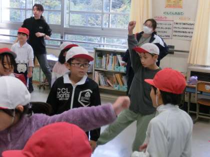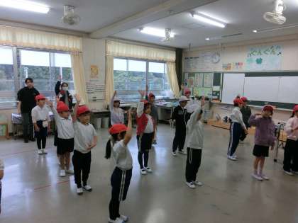 運動会に向けての練習が始まりました。今日はあいにくの雨のため、予定を変更して教室での表現の練習になりました。1年生から3年生合同による表現の演技はどんな演技になるのでしょうか。今日は、みんなで動きを確認した後に、3年生が中心となり1.2年生に押している姿が見られました。