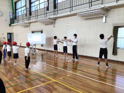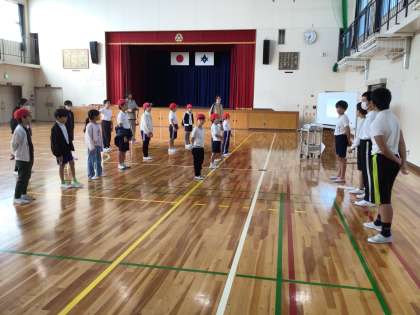今日から運動会に向けて赤白に分かれての応援団の練習が始まりました。6年生が中心になって教えています。どんな応援になるのか楽しみにしてください。