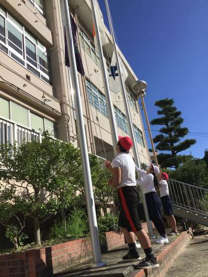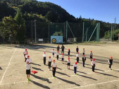 今朝はこの秋一番の冷え込みになりました。1時間目には、日差しがまぶしくぽかぽか陽気になってきました。開会式、閉会式の練習を行いました。全校児童の入場からはじまり、国旗掲揚など一連の流れを確認しました。