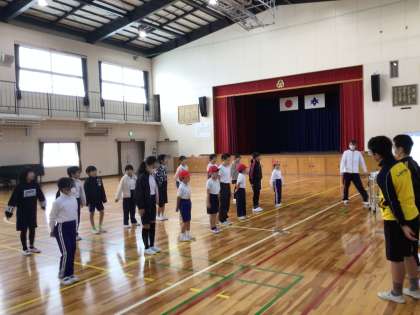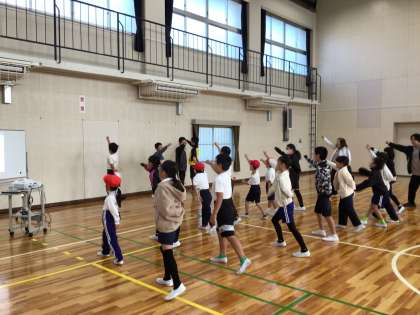 今朝も一段と冷え込みました。朝の応援団の練習は少しずつ形になってきました。今朝も赤白に分かれての練習です。 写真は赤組の様子です。