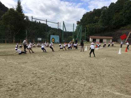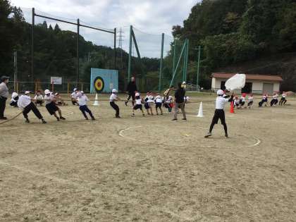 今日の1時間目は、全校種目の綱引きです。入場から本番まで一通りの練習を行いました。みんな力いっぱい綱を引いていました。