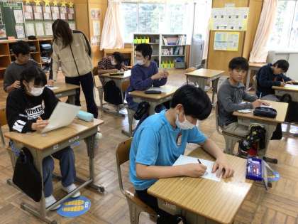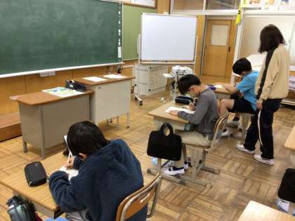 今日は、運動会後の最初の日でした。教室を回っていると、落ち着いて学習をしている子どもたちの姿が見られました。6年生は、運動会の振り返りをしていて、わくファミ班で行った玉入れはどうだったか、振り返りシートに書いていました。「やりきったぞ」という思いが伝わってきました。
