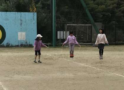 12月になわとび大会を行います。長放課の時間に、なわとびの練習をする子が増えてきました。友達と一緒に、先生も一緒に。なわとび大会では、どれだけ跳べるかな。
