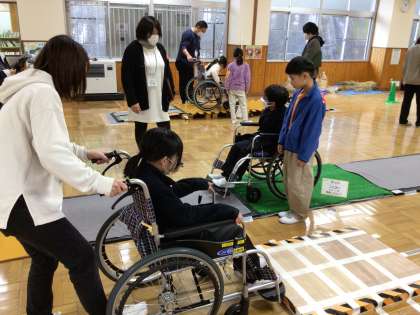 あいにくの天気になりましたが、今日は、2時間目から、トヨタ自動車さんの全面協力による子どもUD教室を行っています。多くのトヨタの方が来校されUD教室が行われています。車椅子の体験や障がい者用の特殊車両の試乗、障がいを持ちながら関連企業で働く方の講演など、今日1日は、3年生から6年生は障がい者に関わる学習をしました。