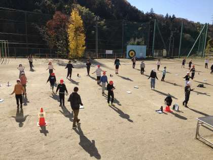 先週は、インフルエンザの影響で実施ができなかった全校での縄跳び練習が始まりました。秋晴れの青空の下元気に音楽に合わせて練習が始まりました。今年度は、練習期間が短くなりますが、来週12月3日には、縄跳び大会、焼きイモ大会を予定しています。