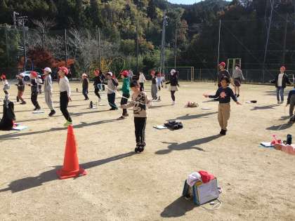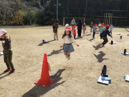 今日もさわやかな秋晴れの中、縄跳びの練習を行いました。それぞれ自分のペースで思い思いに練習をしています。気持ちのいい汗をかいたようです。