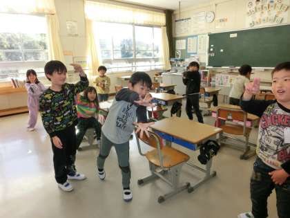 同じく、1年生の教室をのぞくとハメハメハポーズです。みんな笑顔いっぱいです。