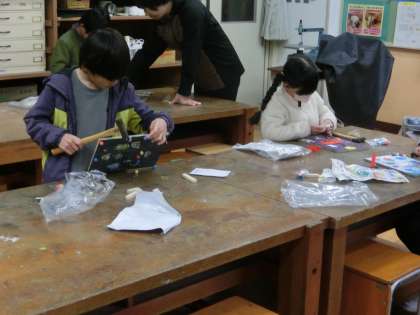 12/5 3年生 図工 くぎ打ちビー玉ゲームづくり