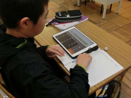 また、教室では、電卓を使って実際に計算をしています。
