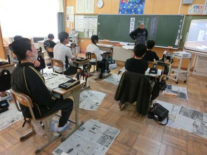 6年生も書初めの練習です。今日は、先週の習字の先生の指導動画を確認し、改めての練習です。