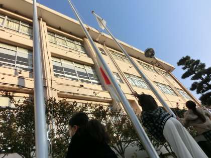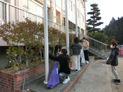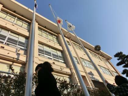 今日もいい天気になりそうです。生活委員会の活動で毎朝旗揚げしています。今日も、青空へ国旗が揚げられます。いい1日になりますように。