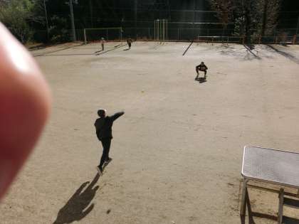 なかよしタイムはたくさんの児童が元気に走り回っています。今日は久しぶりキャッチボール少年を見かけました。大谷グローブの出番です。