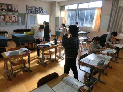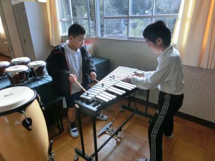 4年生の音楽は様々な打楽器を素材に注目してたたいて音を出して違いについて調べていました。素材によってどんな響き方、鳴りかをするのかをまとめていました。