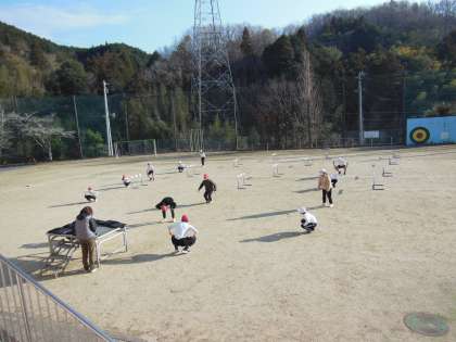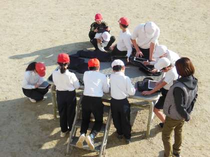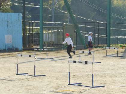 5・6年生の6時間目はハードルの練習です。丁寧に準備運動を済ませ、事前にタブレットで跳び方の確認をして練習です。