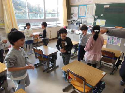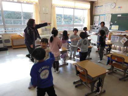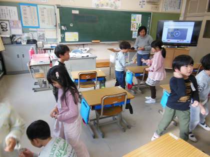 今日は、1年生は、ALT先生との英語の学習です。英語でのじゃんけんをしながら楽しく学習をしました。