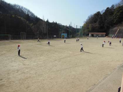 1週間が始まりました。子どもたちの元気な声が聞こえています。天気も晴れ渡り運動場では3・4年生の体育の授業です。サッカーの授業です。今日は、ペアになりパスの練習です。