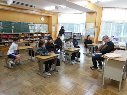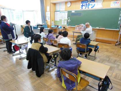 今日は、今年初めての読み語りの時間です。今日は、読み語りボランティアに交じって教頭先生と教務の先生による読み語りが行われました。それぞれ、おすすめの本を用意しての読み語りでした。2クラスとも楽しそうに聞いていました。