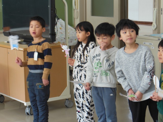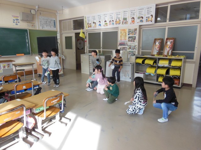 午前中のこの写真について紹介しました。学習発表会に向けてと紹介しましたが、本日午後から行われる入学説明会に見える子ども園の園児とのお楽しみ会の準備の様子でした。1階の廊下まで元気な声が聞こえてきます。本番も元気よく楽しむことができました。