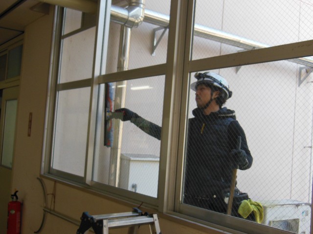今日は朝から清掃業者にる高所箇所の窓ふき作業を行っています。2階以上の教室や特別教室の窓を専門業者による窓ふき清掃です。さすがプロの手さばきです。あっという間にきれいになっていきます。危険な箇所の清掃ありがとうございます。