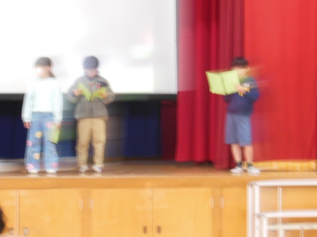 学習発表会まで1週間となりました。3年生は、午前中のしいたけの菌打ち体験の後は学習発表会に向けての練習です。今日は、体育館でマイクやプロジェクターをセットしての本番通りの練習です。緊張して少し早口になる場面もありました。落ち着いてがんばってくださいね。校内では、ここ数日、発熱を伴う体調不良者増えています。近隣ではインフルエンザが流行っているようです。この週末も寒くなりそうです。くれぐれも体調管理にきをつけてください。