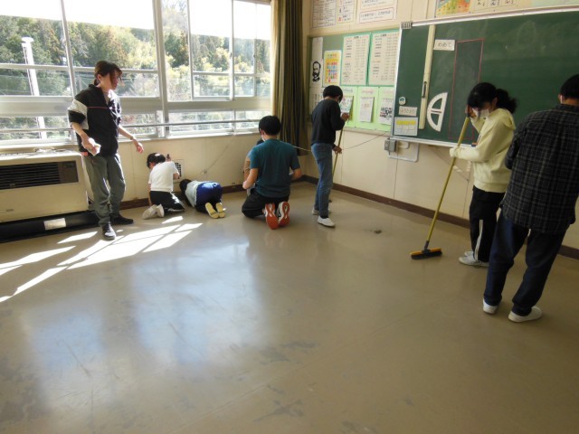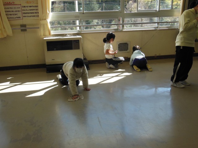 今日の午後からは1・2年生の教室は大掃除の時間です。今日は、卒業を控えた6年生のみなさんが大掃除のお手伝いに来ました。日ごろは動かせない机やロッカーを全部出して徹底的な大掃除です。本当にありがとうございます。この後はワックスがけまでやってくれるのかな?