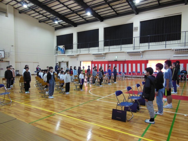 卒業式の本番を明後日に控えて今日は、本番通りの予行練習を行いました。卒業生はもちろん今年初めての1年生も姿勢よく座り最後まで練習に参加することができました。今日は、過去に担任をされた先生が校長先生役やPTA会長役となり思い出の話をされ、涙する場面もありました。