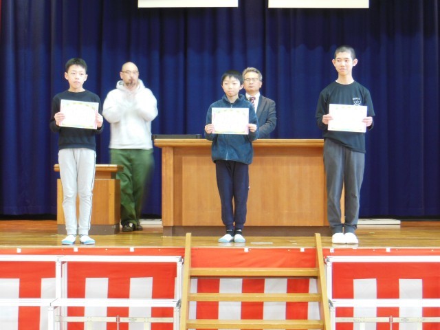卒業式を明日に控え、今日は、6年生の表彰伝達式を行いました。最初に表彰したのは6か年皆勤賞です。この卒業生の入学した年はコロナ感染症による臨時休校など様々な出来事があった年です。そのような困難の中6年間皆勤したことはとても素晴らしいことです。また、その他各種のコンクールの表彰を行い6年生とって最後の全校集会を終えました。
