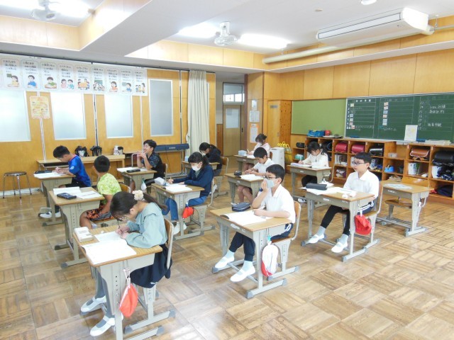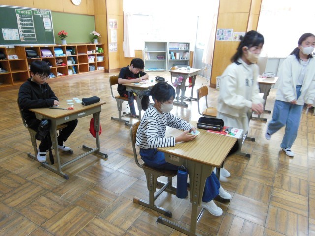 4年生から6年生は、さすがに学校生活には慣れているようです。4年生では、級訓や係を決めているようです。5年生には、新しいお友だちが増え楽しそうに学習をしていました。6年生は早速、高学年としての活動を行っていました。1年生を迎える会のための準備です。