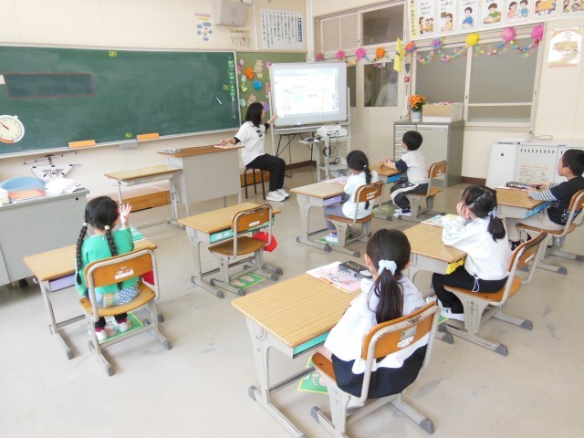 入学式から1週間です。少しずつ小学校の生活にも慣れてきたようです。今日の1時間目は算数です。新しい教科書を中身を確認しながら開いて楽しそうな表情でした。