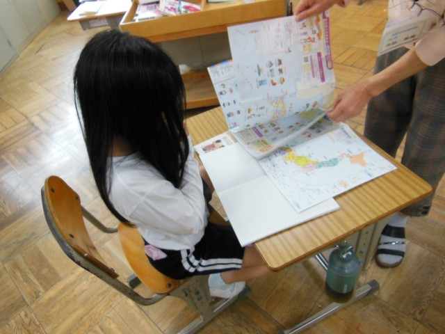 3年生は社会科の授業です。3年生から始まる新しい教科です。今日は、社会科ではどんな勉強をしていくか教科書は地図帳を広げてわくわくです。