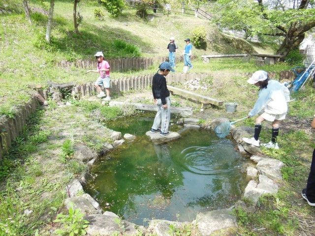 4年生の理科は、春の生き物探しです。幸海ふれあいパークで生き物を探していました。蝶々を追いかけたり、男の子は何やら捕まえて見せてくれました。