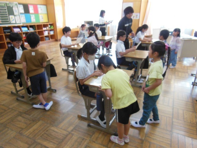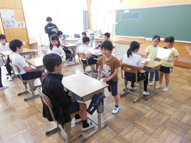 1年生は、先日行われた1年生歓迎会の感謝を伝えるために6年生の教室を訪問しました。1年生から6年生のお兄さんお姉さんに写真入りのメッセージカードを手渡しました。ありがとうございました。