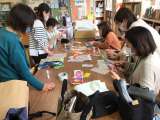 図書館に行くと、クローバーさんが本の帯やシールを使ってしおり作りをしていました。...