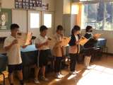 音楽室から4年生の元気な歌声が聞こえてきました。今日は、4年生の音楽は2つのグ...