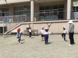 1,2年生は、体育で縄跳びとサッカー(ボール蹴り遊び)に取り組んでいました。縄...