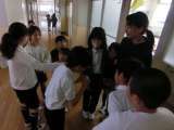 今朝は、5年生は、少し遅めの登校でした。登校してなかよしタイムはすぐに昨年度担...