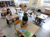 1年生の図工は、はさみの上手な使い方を学習しています。今日は、折り紙をいろんな...