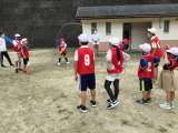 最初に跳び方のモデルとして高学年の代表が跳んでみせたチームもありました。みんな...