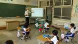 先生と一緒に楽しく跳ぶ一年生もいました。最初は小さな声だったのに、最後には、どん...