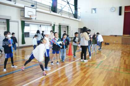 「縦割り班」の絆を深め、リーダーシップやフォロワーシップを学ぶ場として教育計画に位置付けており、400人が12の班に分かれて15分ほど遊びを楽しみました。