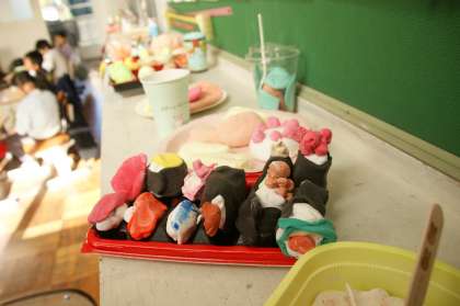 自分の大好きな「ごちそう」を紙粘土と絵具で表現します。