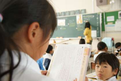 資料「きつねとぶどう」を読んで、考えを出し合っています。